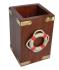 Ahşap kalemlik. Can simidi figürlü. 7x7x10.5 cm.