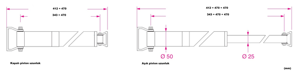 Silindir ve bağlantı braketleri anodize hafif alaşımdan, piston ise paslanmaz çelikten üretilmiştir.