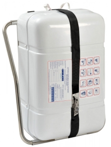 Hassas döküm paslanmaz çelik kelepçeler (4 adet) ile monte edilir. Sağlam naylon kaplı paslanmaz çelik kayış + kam kancası ve asma kilit halkası ile can salı sabitlenir. Kam kancası açılarak hızlı bir şekilde suya indirilir.