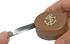 Sert ahşap kutulu ve pirinç balıkçı çıpası kaplamalı. Gümüş renginde metal şerit metre 2m (78”) uzunluğunda olup cm ve inç olarak derecelendirilmiştir. Kutu çapı 55mm