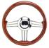 Direksiyon simidi. Kolları paslanmaz çelik, tutamak maundur.