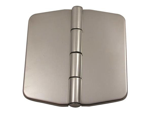 Yuvarlatılmış kenarlı dikdörtgen paslanmaz çelik menteşe. Her iki tarafında vidalama için 3 adet M5 ölçüsünde delik bulunmaktadır.