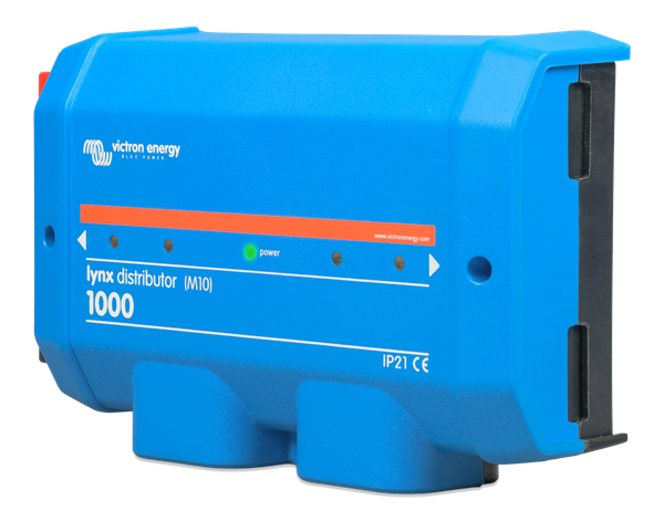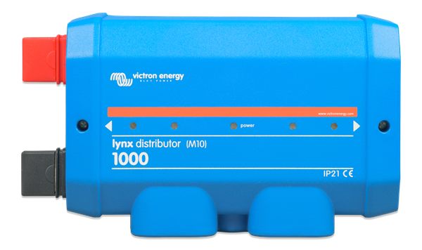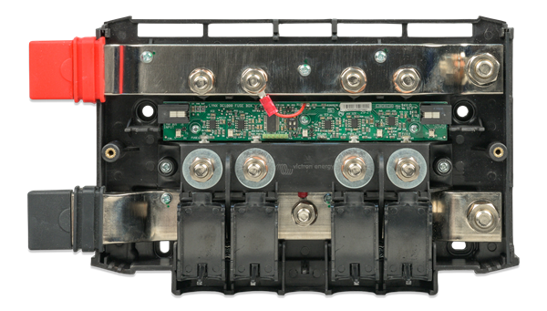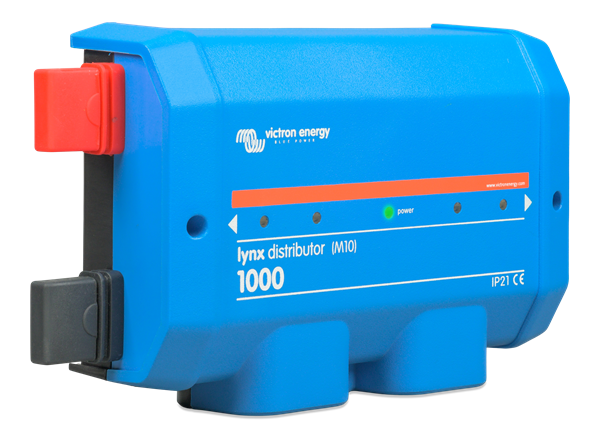 Dört DC sigorta yuvalı modüler DC bara. Her sigortanın durumunu izleyip, öndeki LED üzerinden durumunu gösterir. Lynx Distributor, M8 ve M10 modelleri olarak mevcut olan modüler Lynx dağıtım sisteminin bir parçasıdır.