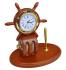 Masa üstü kalemlik. Makara ve ahşap dümen çerçeveye sahip saatli. 18x9x18 cm.