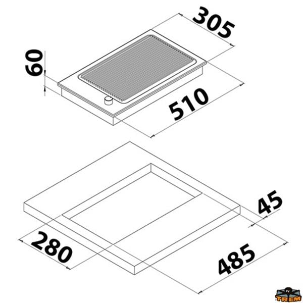 Montaj Ölçüsü / Cut-out size: 485 x 280 mm