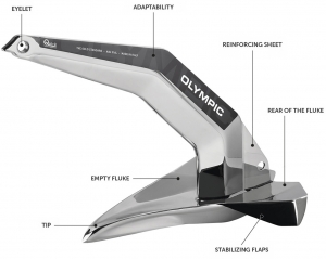 Sonradan kaynaklanan sac metal şekillendirme işlemi, Olympic çıpalar için seçilen üretim süreciydi. Bu, yüksek bir mukavemet/kütle oranına izin vererek ağırlık dağılımı optimizasyonunu garanti eder. Ayrıca oluşan boşluklar ve içlerinde sıkışan hava, bir yüzme etkisi yaratır ve bu da çıpanın deniz tabanı üzerinde doğru konumlandırılmasını sağlar. Kompakt şaft sayesinde Olympic çıpa şu anda piyasada bulunan çoğu baş makarasına uyum sağlar.