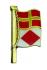 Uluslararası işaret bayrağı kodlarını kullanarak gizli anlamlar gösteren altın kaplama ve mineli rozet.