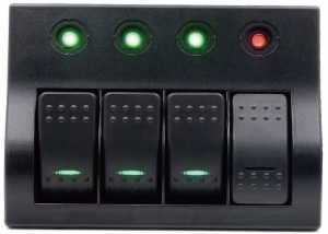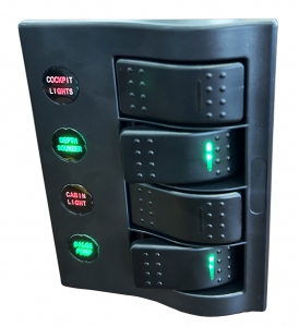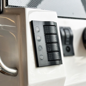 Siyah polikarbonat çerçeveli. Ledli anahtarlar ve resetlenebilir otomatik sigortalarla donatılmıştır.