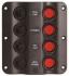 Sigorta paneli. 12V DC. Dalga dizaynlı. Siyah plastik. Otomatik sigortalı ve led indikatörlü switch’li.