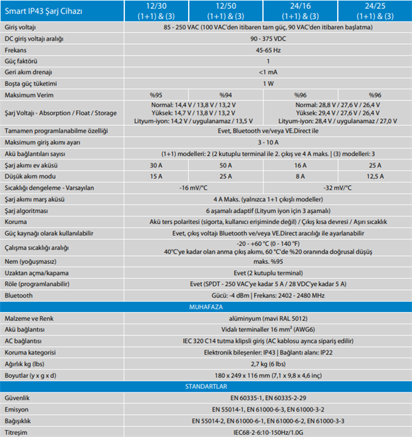 SMART IP43 CHARGER 12V/50A(1+1) 120/240V Ürün ÖZELLİKLERİ